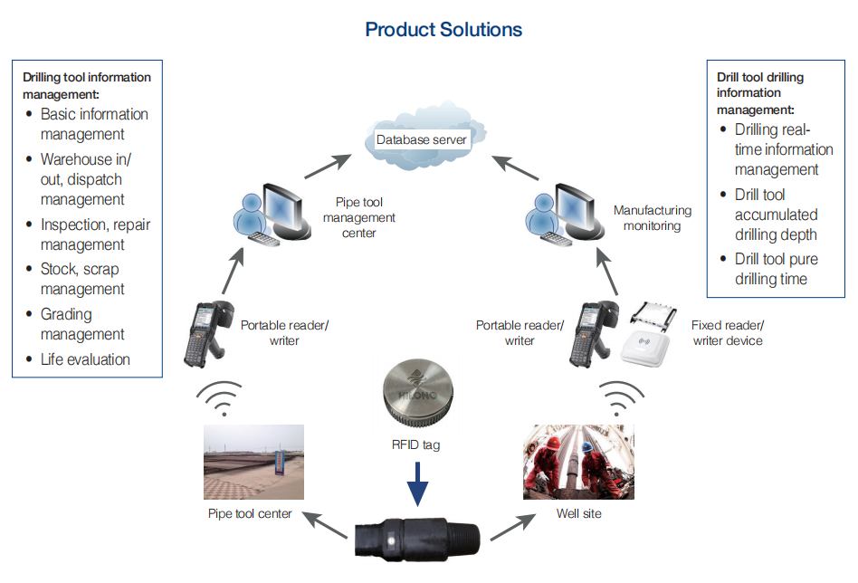 With Hilong's Electronic Tag Drilling Tool and IoT (Internet of Things) Management System, a radio frequency identification (RFID) tag is installed on each and every drilling tool product, and each tag acts as a unique "electronic ID card". The IoT Management System, combined with smart reader/writer devices, can efficiently and accurately realize full life cycle management of each drilling tool from production, warehouse in/out, allocation, use, maintenance, and testing to scrapping.